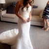 This beautiful 2016 Pronovias dress has 3 layers of different lace to create dimension and introduces the most elegant interest and texture. It has a sweetheart neckline and a mid/low back with a beautiful lace train. It is beautiful bustled and provides the perfect silhouette for your big day. I wish I could wear it over and over again!