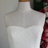 Lace strapless gown. It’s in immaculate condition and had been stored in a professionally sealed display box until it was opened for sale/taking of photos.