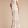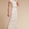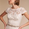 "A beautiful example of drama and ease working hand in hand, this gown commands attention with bold, graphic lace and a fitted silhouette. Demure cap sleeves accent the high neckline and illusion detailing." - From the BHLDN website.