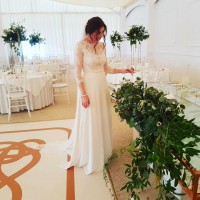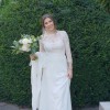 Pronovias Tane Dress AW2017 Collection Size 8UK Silk crepe skirt with hard guipure lace appliqués on the sides and French Chantilly lace on the upper part of the bodice. 3/4 French Chantilly lace sleeves with hard guipure lace appliqué. Fits measurements bust 86cm/35inch, waist 70cm/24.5 inch, hips 100cm/40.5inch Height 5.6/ 172 cm and wore 5 inch/10cm heels on the day. Happy for you to come and try it before buying it / based in North London Has been dry cleaned and it’s in impeccable state. RRP £1,590 No missing buttons, no rips, lace in perfect condition, comes with Pronovias cover and hanger.